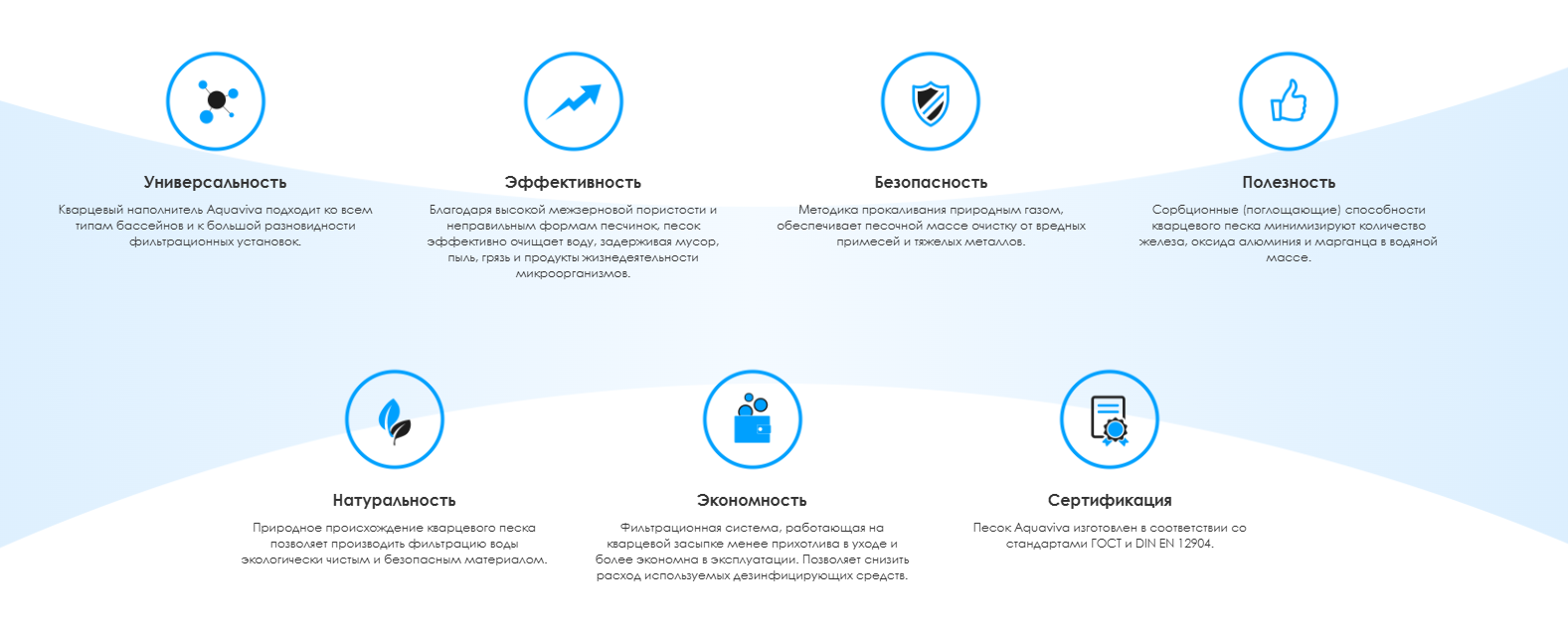 Эффективность: Фракция 0.8–1.2 мм идеально задерживает мусор, песок не «слеживается» и легко промывается в режиме обратной промывки фильтра.