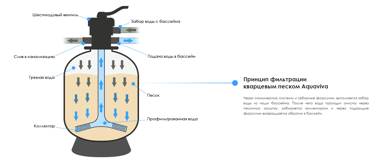 Качественный песок от Aquaviva — залог прозрачной воды в вашем бассейне. Это универсальный наполнитель для песчаных фильтров, который подходит для каркасных, бетонных и композитных бассейнов.